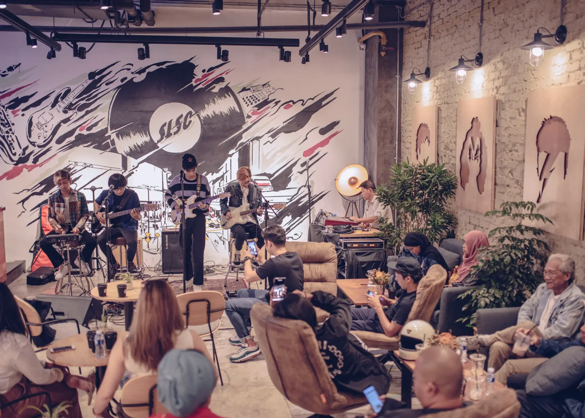Inspired by music and social culture, the space translates rhythm into a physical experience. Industrial textures meet warm materials, balancing edge and comfort—designed as more than a café, but a creative hub for community and connection.